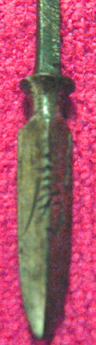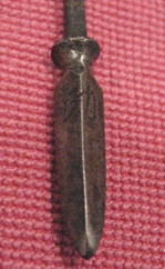 Which brings me back to the yanone. Another one turned up about five years ago on a discussion group dedicated to this sort of thing. I’ve compared the signature on mine to that one, and I’m satisfied that they were done by the same smith. Considering the difficulty of getting information on him, odds are this smith is fairly obscure, and therefore less likely to have his mei copied. The catch is that no one’s sure who he is. As with most smith names, more than one smith worked under the name “Sukefusa,” the most famous one dating from the 13th century. I’m reasonably certain this arrowhead was not made by that one. The MMA in NY has a yanone in its collection also signed Sukefusa, which they date from the 18th century. Problem is, they don’t have a picture of it online, so I can’t compare this signature to that one. If I’m ever in New York, I’ll have to go look. In the meantime, and as time permits, it’s like doing detective work. I want to know who this particular Sukefusa was, where he worked, what other things he did.