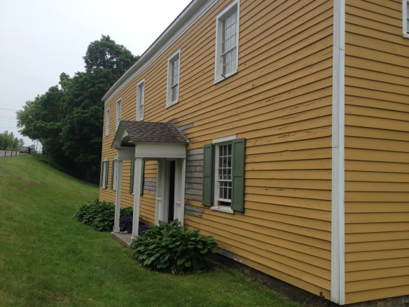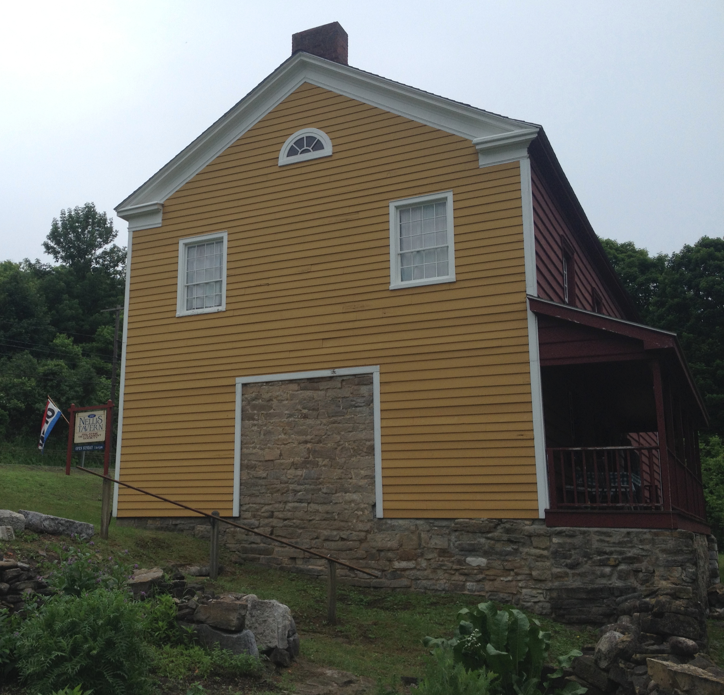 In our continuing efforts to learn more about the history of our new home, yesterday Carol and I attended the Rhubarb Festival at the Nellis Tavern. The Nellis Tavern sits between St. Johnsville and Nelliston on HWY 5. It was originally built by the Nellis family, Palatine Germans who had fled to this country after repeated invasions from France. The house was built as a block (fortified) farmstead something like Fort Klock, with a stone house and mill on the site, around 1747. The original buildings were replaced by the current structure in the early 1780’s and it served as a tavern and inn along the Mohawk River. It remained a tavern and private home through most of the 19th century before the building was abandoned around 1950. It has since been taken over by the Palatine Settlement Society, which is overseeing its restoration.