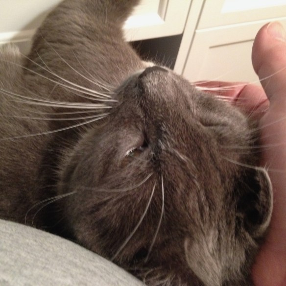 Then there’s the mystery of the desk. My desk, specifically. When I’m downstairs, watching a bit of mindless tv or noodling on my tablet, he ignores me. Unless I’m going into the kitchen, in which case he hurries after and tries to convince me hasn’t had any kitty treats since forever. Forever being maybe an hour. However, when I’m upstairs at my desk and trying to do something on the computer? He’s suddenly in my lap demanding all the attentions. Not when I have time to kill, only when I’m trying to work on whatever.