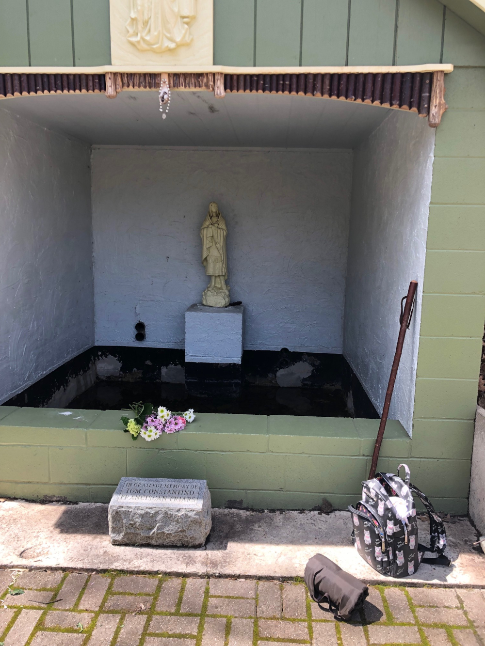 Regardless, its sacred status was established once Kateri was made a saint, the first indigenous saint created by the Catholic church in 2012. By tradition she was baptized in this very spring. She was an early convert to Catholicism among the Mohawks and apparently used that fact to argue against an arranged marriage she didn’t want. After that she walked 200 miles to a Jesuit-run Native American Mission near Montreal, Canada, to make sure she didn’t get married. The spring itself is a much easier walk once you realize it is located some distance from the main complex dedicated to her on HWY 5 and on a separate road. The spring is in a wooded area near the original location of the village, now marked as an archaeological site, down a gorge apparently carved out by the spring itself over several thousand years of existence.