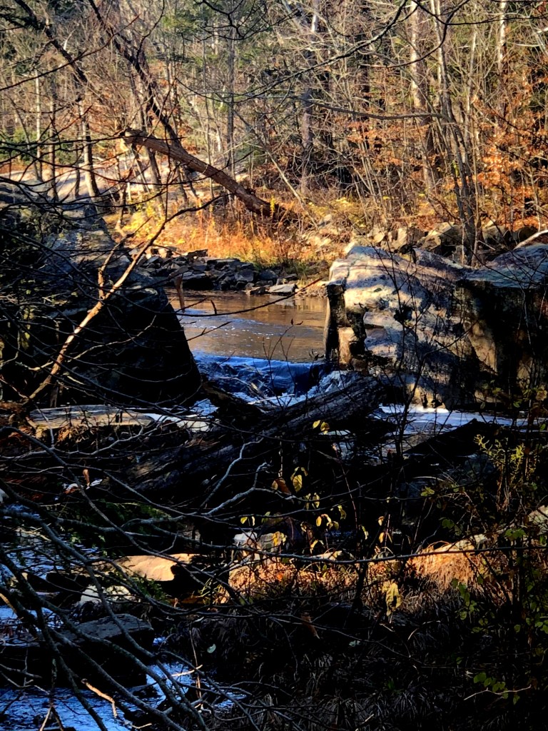 Since both First Reader and I were going a little stir-crazy, we drove up to the covered bridge at Salisbury Center and took a stroll around Spruce Creek. Sometimes it just feels good to get your feet on the ground, and it was a lovely day for it.